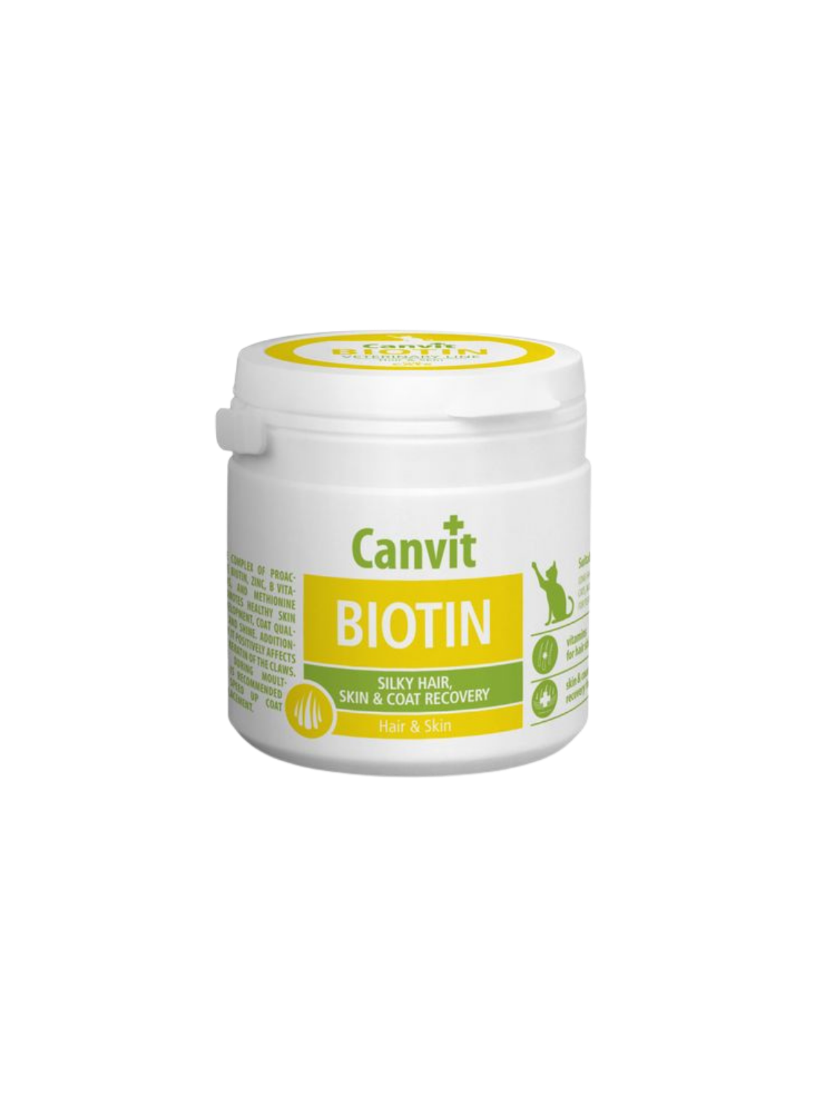 Le pelage et la peau constituent la première couche de défense de l'organisme contre les agressions extérieures. Pour assurer cette protection, la peau a besoin d'un apport adéquat en nutriments tels que la biotine, les vitamines B2, B3 (niacinamide) et B5 (pantothénate de calcium), ainsi que des microéléments et des acides aminés comme le zinc, le cuivre et la méthionine. Canvit Biotin est une source complexe de nutriments essentiels au bon fonctionnement et à la croissance de la peau et du pelage.