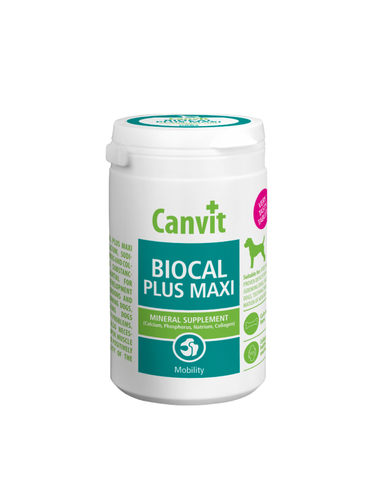 Canvit Biocal Plus est une source de calcium et de phosphore offrant une excellente biodisponibilité. Enrichi en collagène, il favorise le bon développement, la croissance et la régénération des os, des articulations et des dents.