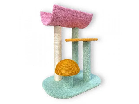 Avec ses couleurs vives et son design moderne, cette tour apportera une touche d'élégance à votre intérieur tout en offrant un espace ludique et fonctionnel à votre chat. Elle comprend deux plateformes, dont une en forme de fleur, et un poteau recouvert de corde en fibre naturelle, avec un champignon idéal pour faire ses griffes.