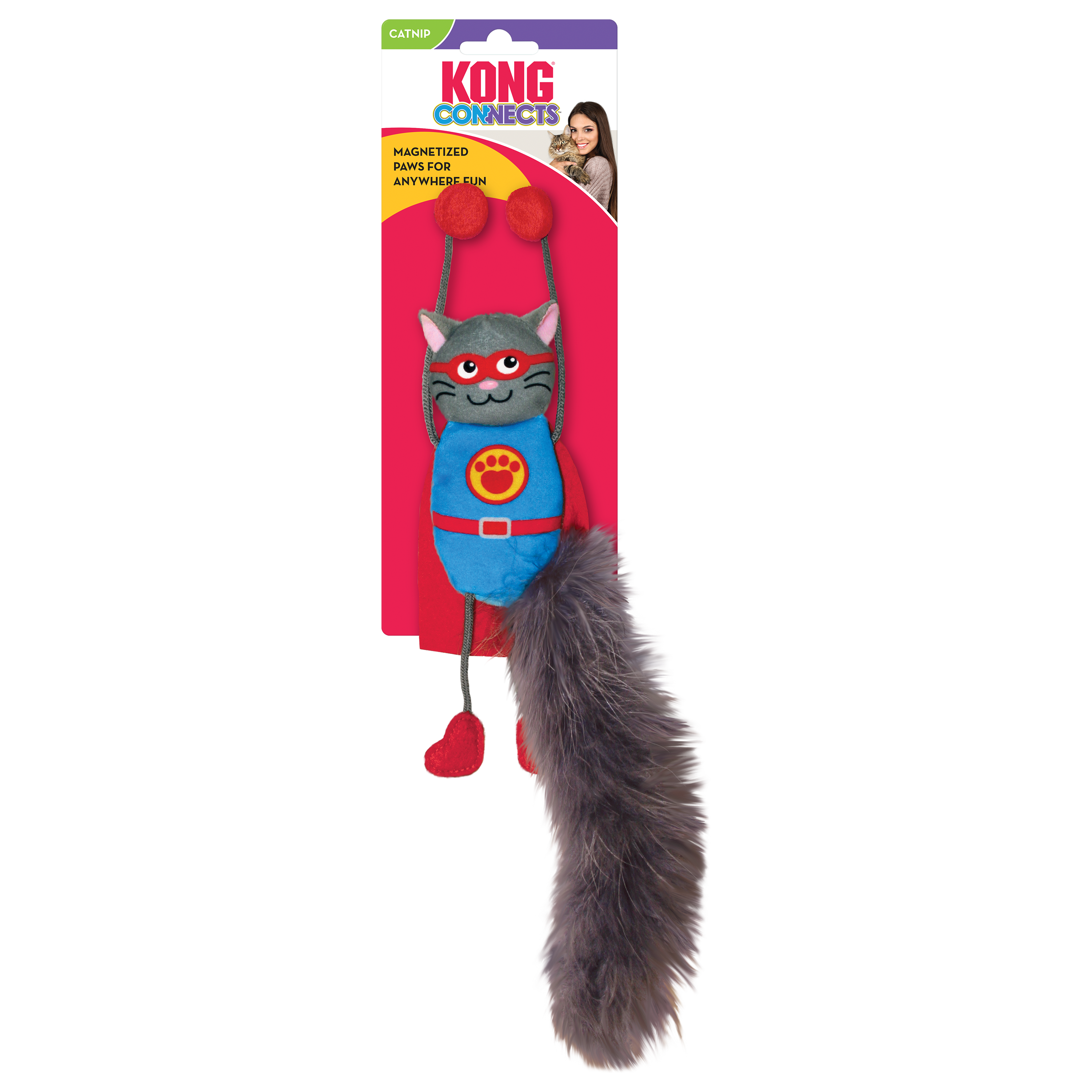 KONG Magnicat sauve les chats de l'ennui grâce à ses pattes aimantées qui leur permettent de se détendre tout en leur offrant une variété infinie de divertissements. Ses pattes irrésistiblement pendantes et sa queue flottante stimulent et récompensent l'instinct de chasse, tandis que les crépitements stimulent le comportement naturel de chasse. Les crépitements et l'herbe à chat KONG North American Premium prolongent les exploits.