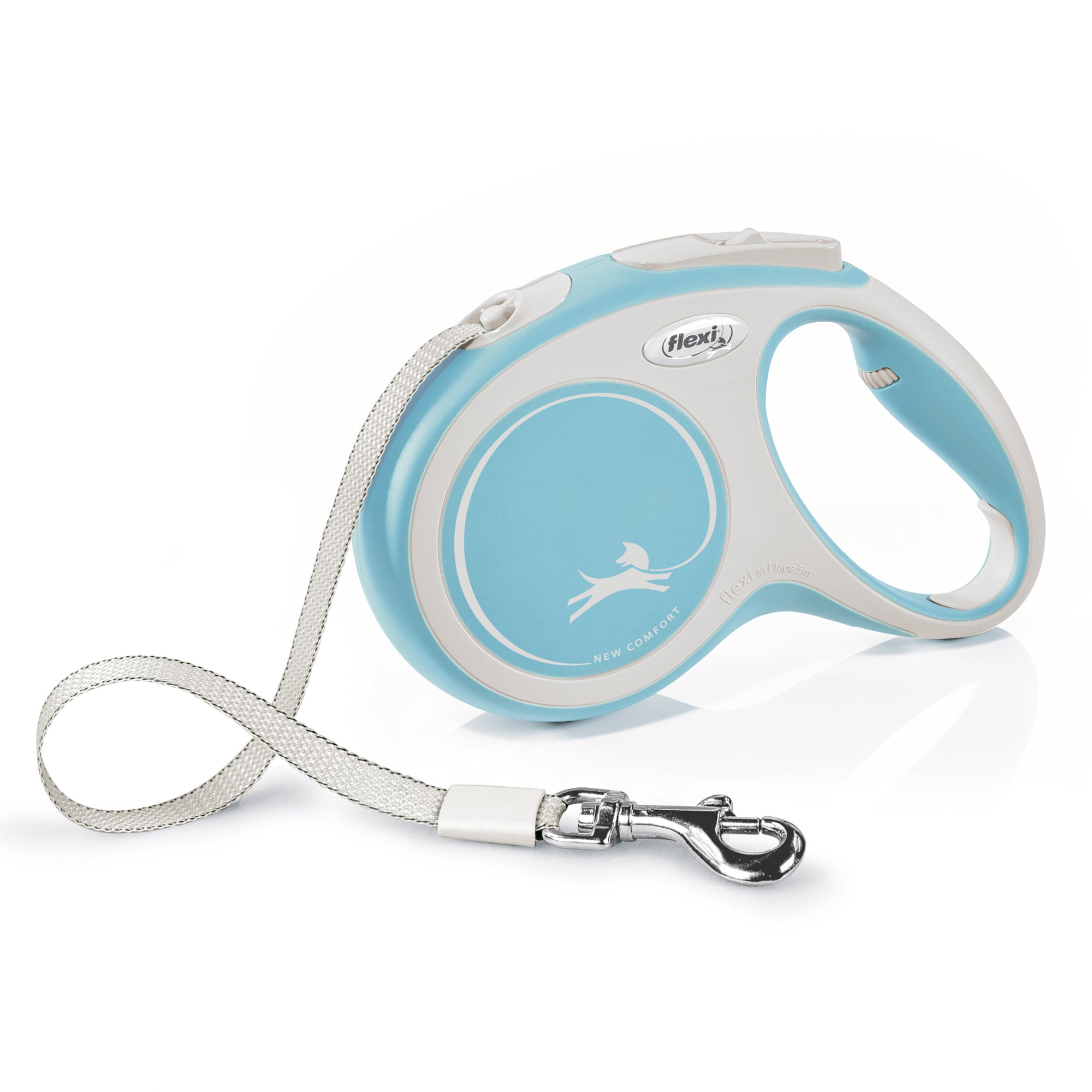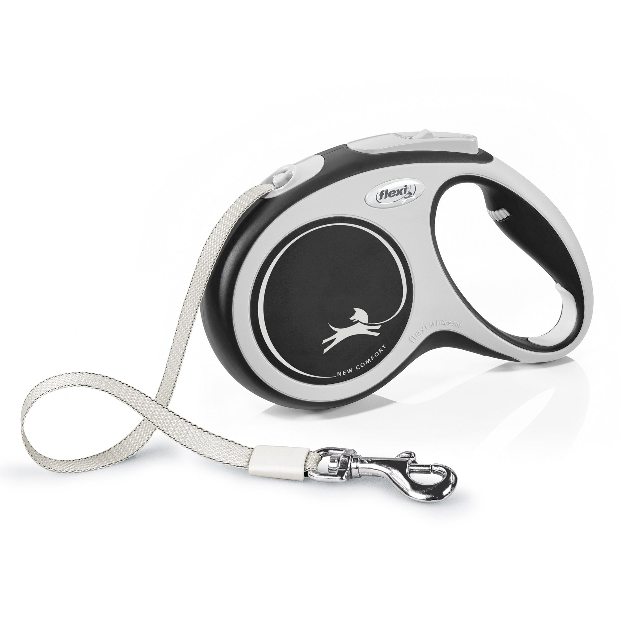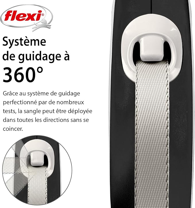 • Poignée ergonomique : La poignée de la laisse "New Comfort" version sangle est conçue de manière ergonomique pour une prise en main confortable. Cela réduit la tension sur votre main pendant les promenades et vous permet de garder le contrôle sur votre chien. Laisse sangle de 8 m, Pour des chiens jusqu’à 50 kg, Système de freinage confortable, Composants souples