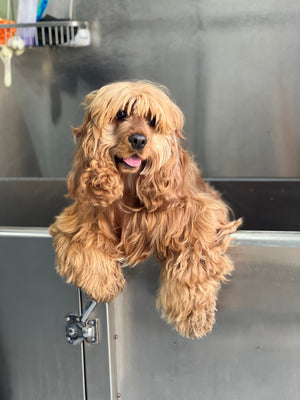 On démêle, on lave, on masse, on câline et on vous envoie avec un poil soyeux, une odeur à tomber et des oreilles qui ne sentent pas le fromage !