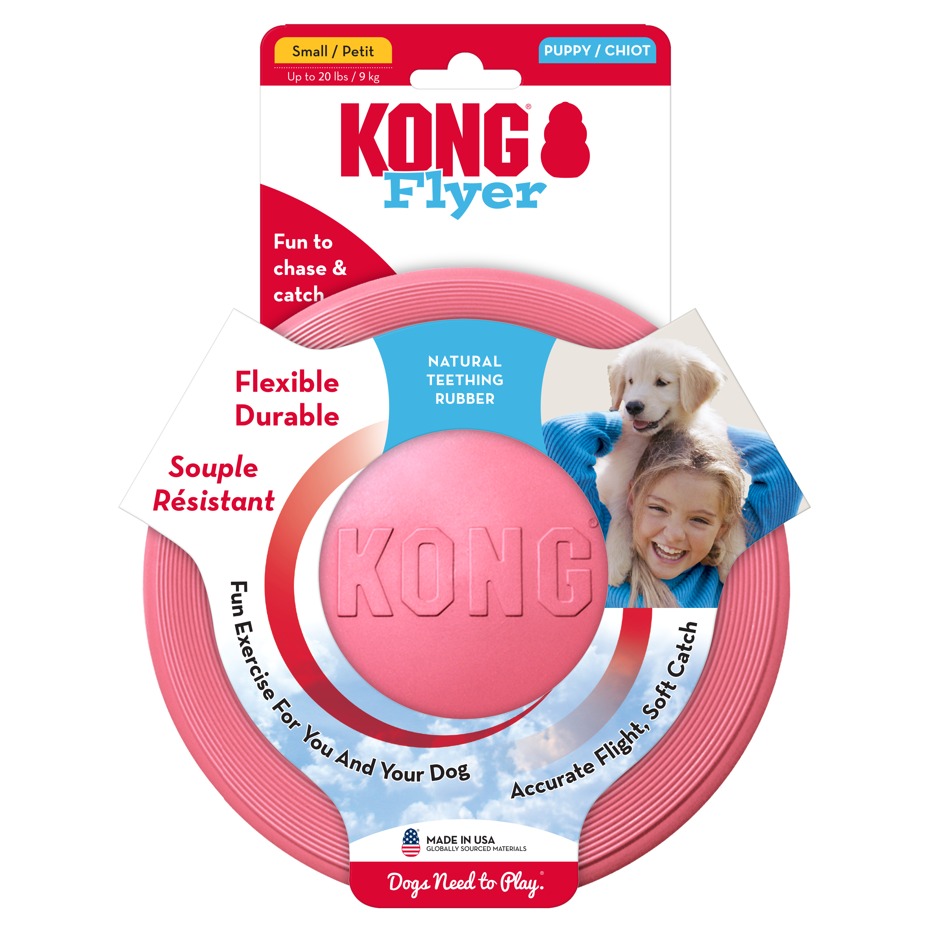 Le KONG Puppy Flyer est conçu pour les chiots qui s'initient aux jeux de lancer/rapporter. Fait du caoutchouc unique KONG Classic pour chiot, ce frisbee assure une interception plus douce. Le KONG Puppy Flyer, dont la taille est spécifiquement adaptée aux chiots, est idéal pour les chiots de moins de 9 mois qui pourront ensuite passer au KONG Classic Flyer. Laissez la passion de votre chiot pour aller chercher prendre son envol avec un disque plus sûr qui offre des activités saines.